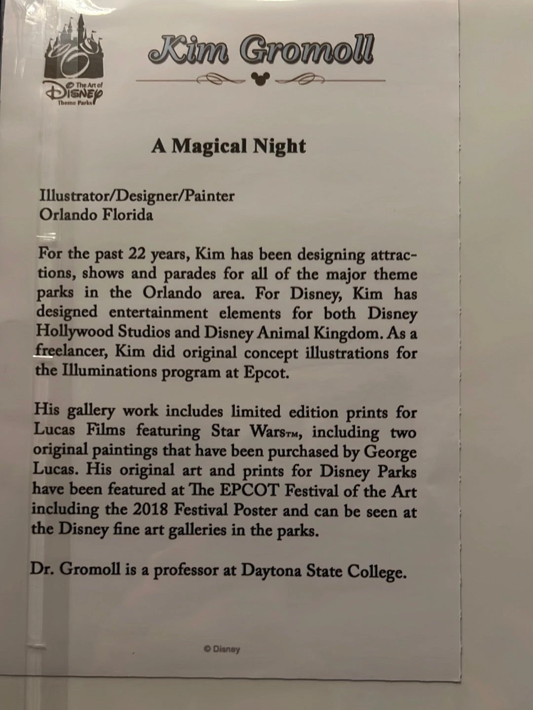 Disney“A Magical Night” By Kim Gromoll Castle 14×18” Matted Print