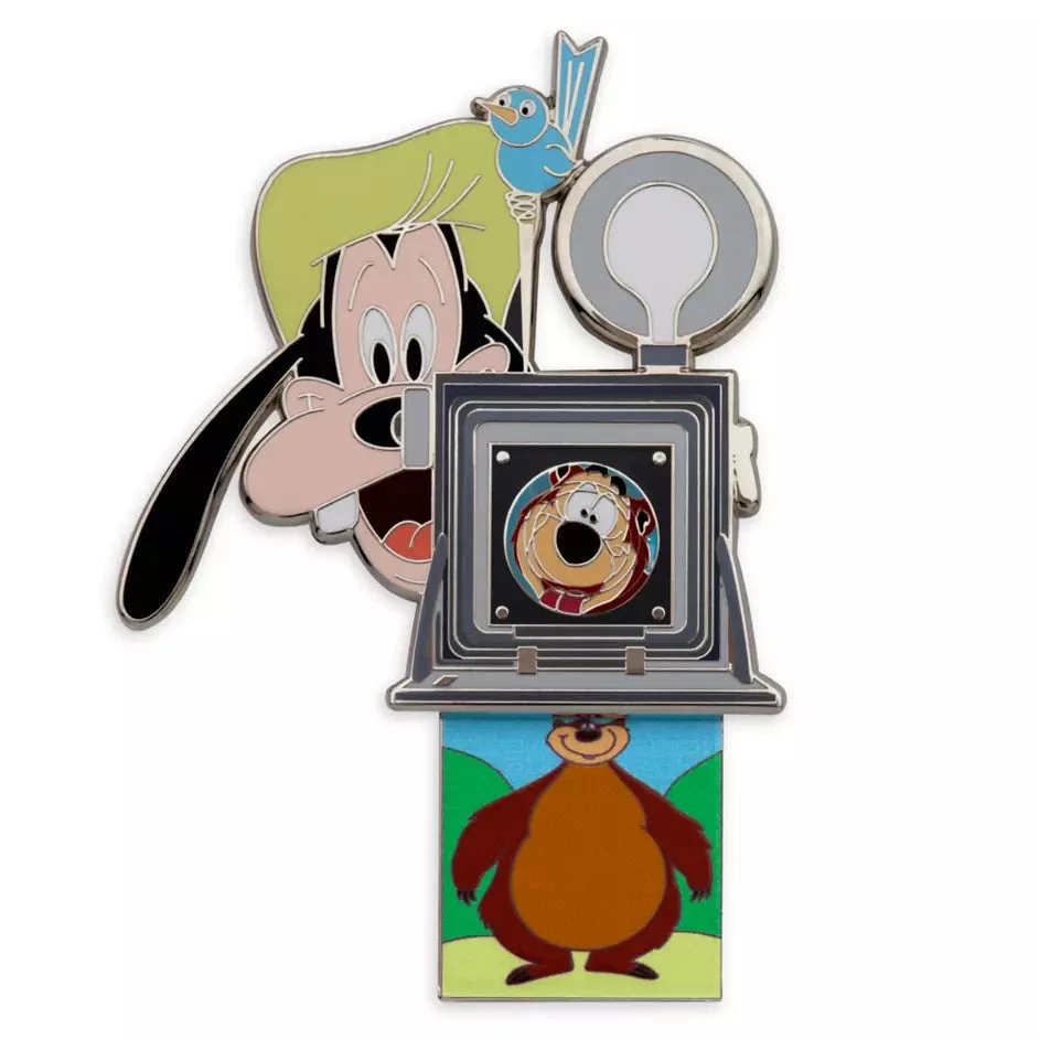 Watch the birdie! Brownstone National Park’s most trouble-bound resident, Humphrey Bear, made his first animated appearance alongside amateur photographer Goofy in Walt Disney’s Hold That Pose (1950), then went on to bedevil Donald Duck and Ranger J. Audubon Woodlore in a series of frantically funny short cartoons. This limited release pin with slide and swivel features is inspired by his screen debut. Pick it up and put it in the bag!