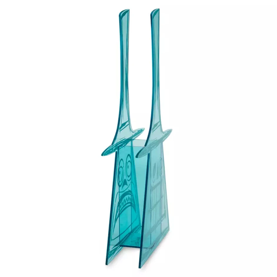 Which bloom will do? His Honor couldn’t possibly decide so luckily it’s up to you what to display in this Mayor bud vase. Inspired by Tim Burton’s The Nightmare Before Christmas, this colorful translucent vase features sketches of one of the Mayor’s expressions (fretful or smiling) on each side. With room for a bloom or two (expired or alive) it’s the perfect choice to liven up a space.