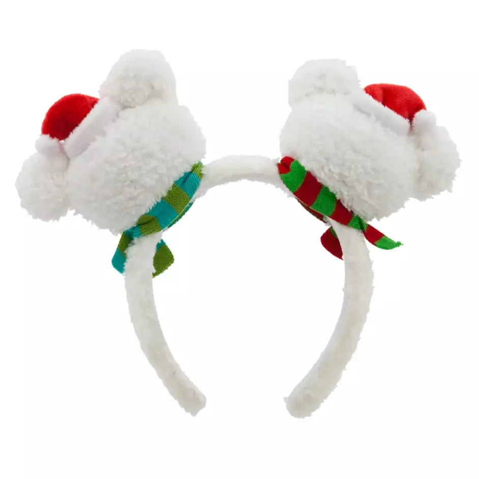 Like Minnie, you’ll show snow-day style in this happy holiday headband. Glittering mouse ears frame wintry 3D scenes of Mickey, Minnie and a snowman, all topped by a satin bow. ”Chears” to you!