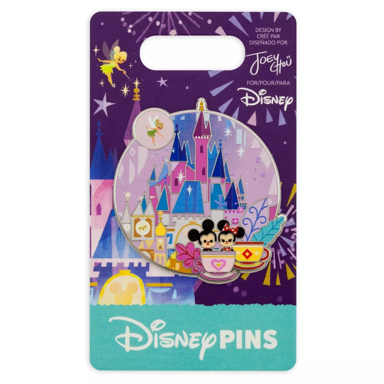 Join Mickey and Minnie for a dizzying spin on a mad teacup while Tinker Bell makes a daring flight over Fantasyland on this charming cloisonné pin. Designed by Joey Chou in his distinctive whimsical style, it’s part of the artist’s colorful collection for Disney Parks.