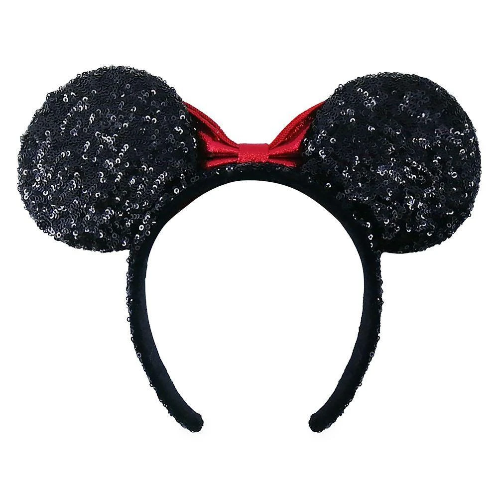 Disney Minnie Mouse Black Sequined Ear Headband With Red Bow