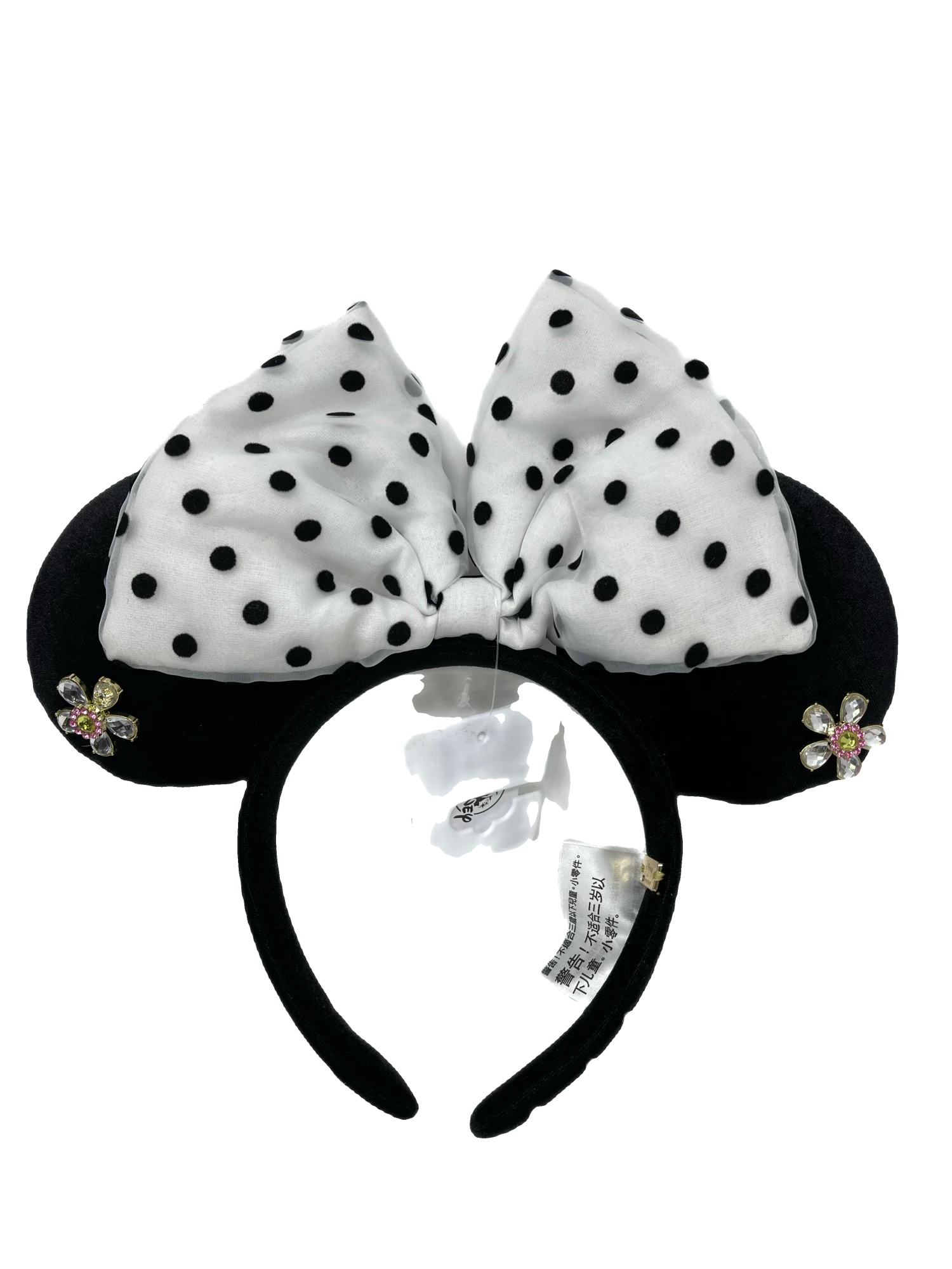 Disney Polka Dot Party Baublebar Black Velvet And Pearl Minnie Ear Headband