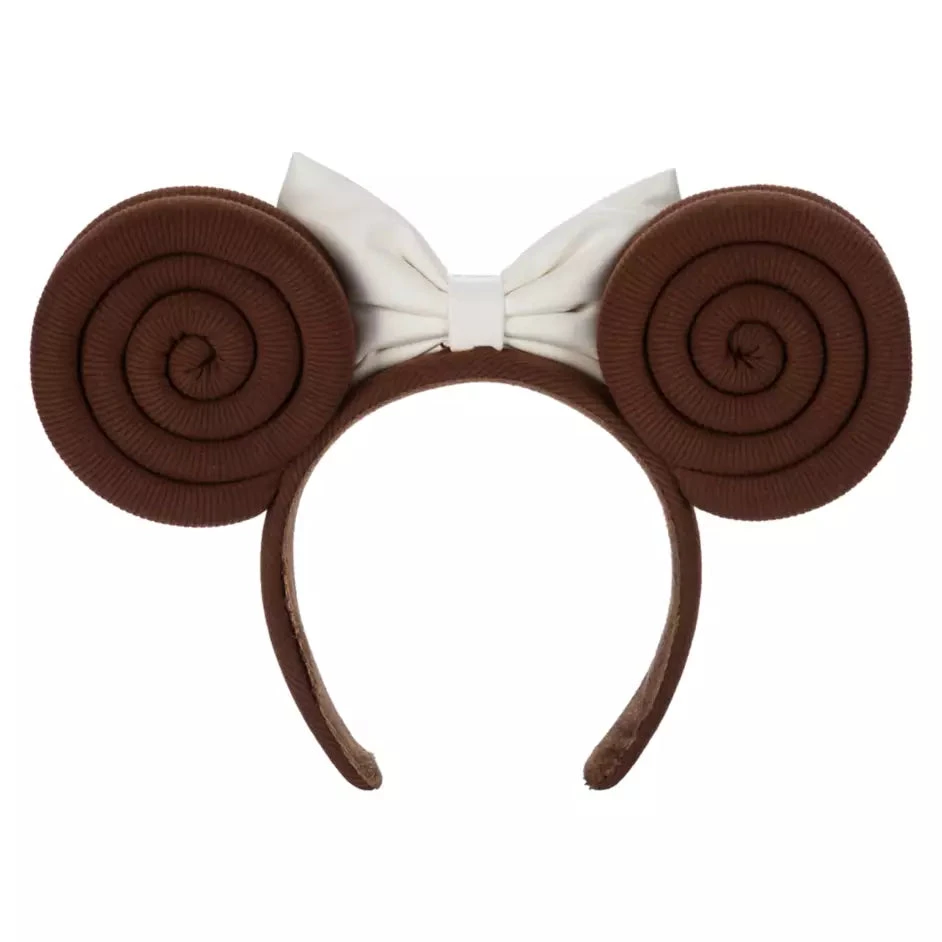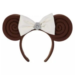 Rebel leader Princess Leia Organa’s famous ”buns” get the mouse ear treatment on this headband inspired by the original cinema sensation Star Wars: A New Hope. Reimagined in corduroy, her iconic hairdo is topped by a faux leather bow and a silvery centerpiece befitting the heir to Alderaan’s throne.