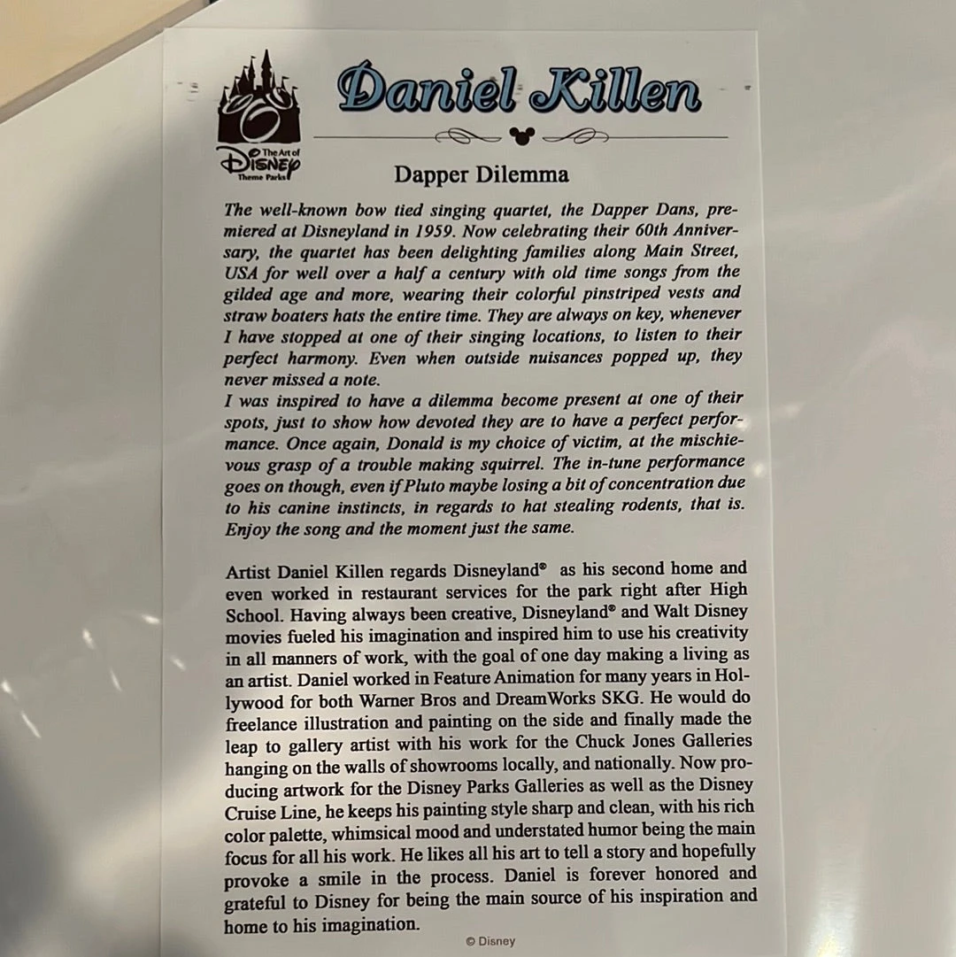 Disneyland “Dapper Dilemma” Matted Print By Daniel Killen Mickey, Goofy, Pluto